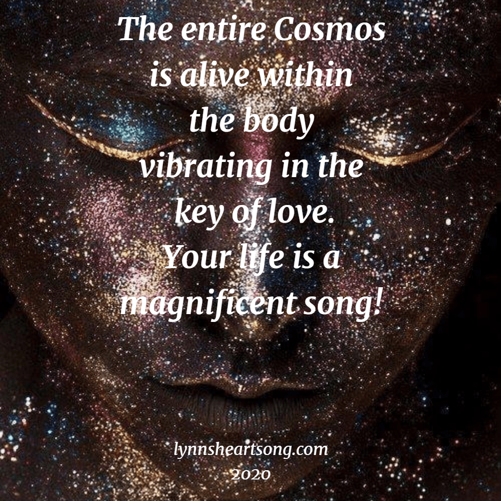 Aug15 Magnificent Song! Posted on August 15, 2020 by Lynn Kennedy Standard The entire Cosmosis alive within the bodyvibrating in the key of love.Your life is a magnificent song! August 2020 Share this: Click to share on X (Opens in new window) X Click to share on Facebook (Opens in new window) Facebook Like Loading...